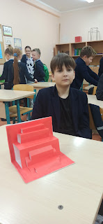 Modulio metu mokiniai karpė, lankstė ir konstravo erdvinį modelį, nagrinėjo jo savybes, improvizavo karpydami ir lygino gautas erdvines figūras. Mokytoja Angelė Grigonienė