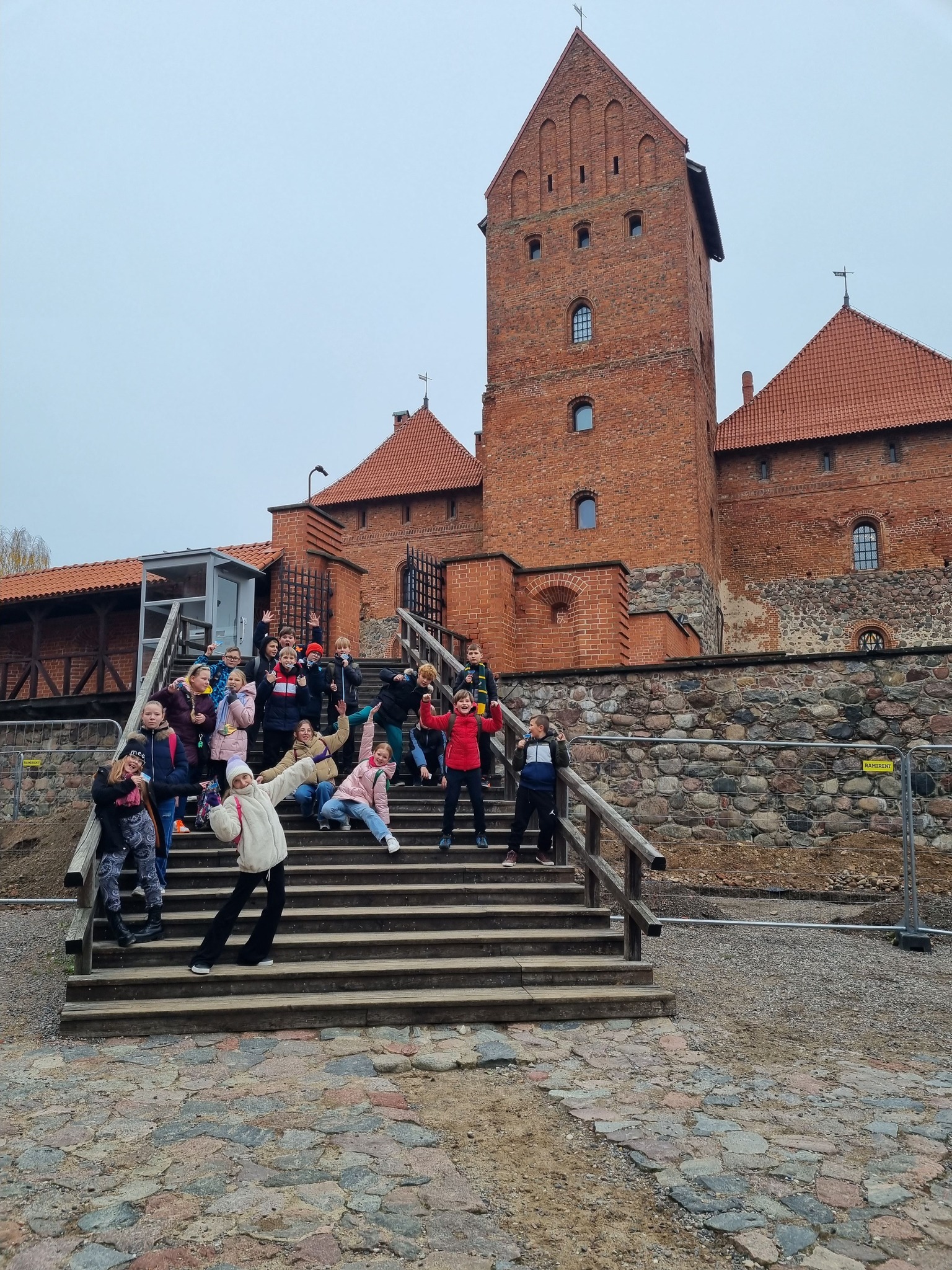 Darganotas oras penktadienio rytą 5a ir 5c klasės mokiniams nuotaikos nesugadino. Visi smagiai nusiteikę išvyko į Trakus. Pakeliui į Trakus aplankė Aukštadvario regioninio parko lankytojų centrą, kur maloni darbuotoja papasakojo įdomių dalykų apie miestelį, regioninį parką, lankytinas vietas. Trumpam stabtelėję prie Navos ežero pasigrožėjo rudens peizažu ir išvyko į Trakus. Čia mokiniai pasidalinę dvi grupes dalyvavo karaimiškų kibinų kepimo ir baltiškų papuošalų gamybos edukaciniuose užsiėmimuose. Po užsiėmimų įvyko gaminių mainai. "Kepėjai" vaišino draugus kibinais, o "juvelyrai" dovanojo nukaltą papuošalą. Dienos veiklas vainikavo lobio paieškos Trakų pilyje. Po įdomaus gido pasakojimo apie Trakų pilį, miesto istoriją ir kunigaikščių laikus, mokiniams reikėjo, vadovaujantis išgirsta informacija ir pagal pateiktas užuominas, surasti paslėptą lobį. Smagi, turininga ir prasminga buvo diena.